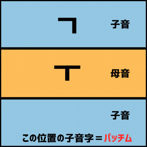 これに無音(むおん)の子音「ㅇ(이응)」をつけて、