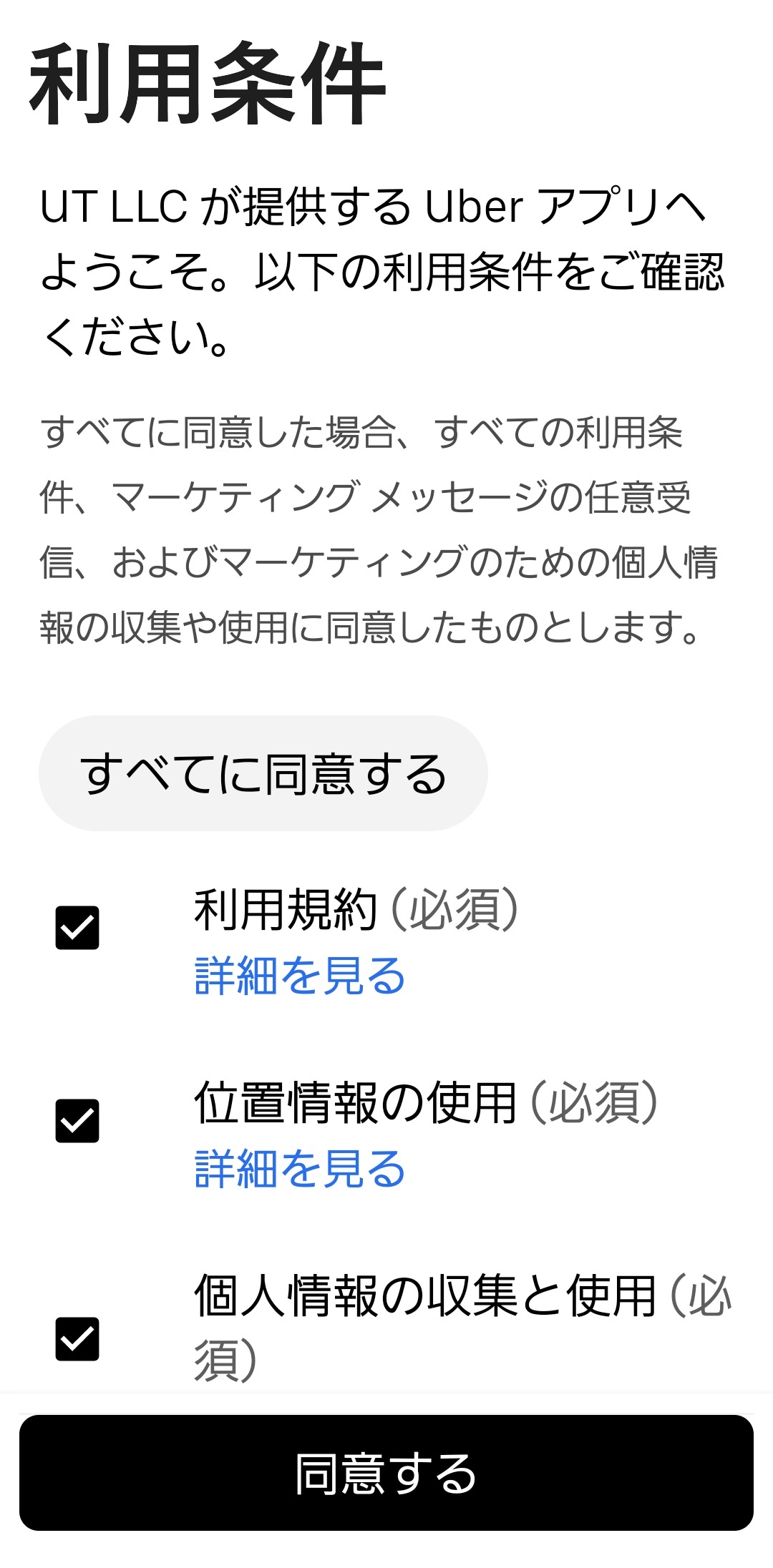 ①スマホで「Uber」アプリを