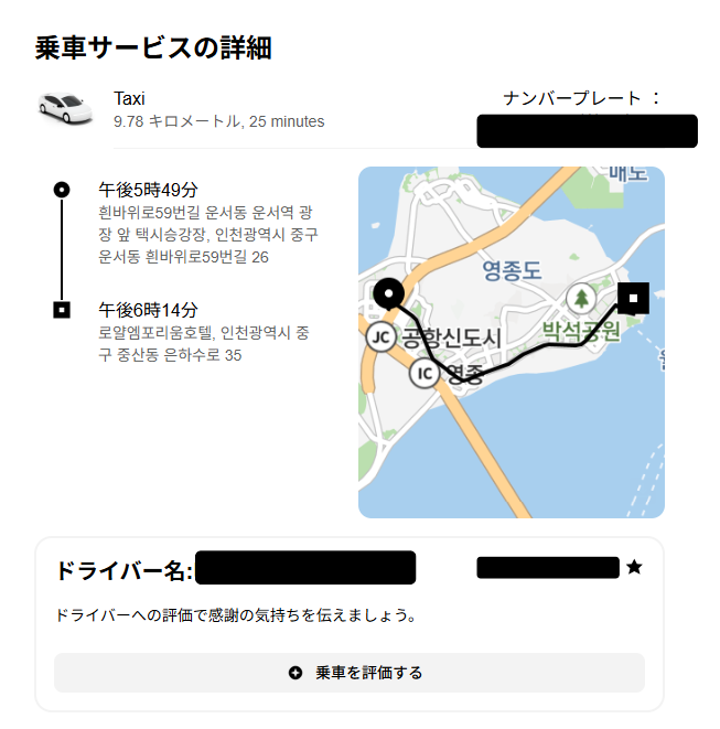 韓国のUberタクシーさんは